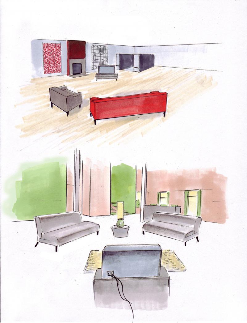 Set design illustration for Nintendo wii advertisement.